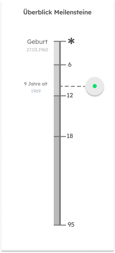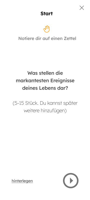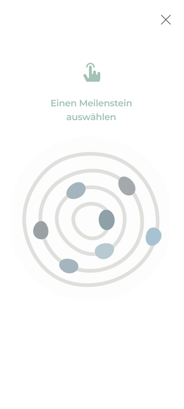 Auf der Rückseite bietet die Postkarte einen direkten Anknüpfungspunkt und Einstieg in die Erinnerung. Wie in der App wird zu Beginn nach den wichtigsten Meilensteinen im Leben gefragt. Diese werden den Kieselsteinen durch Striche zugeordnet. Dies weckt das Interesse, diese Erinnerungen mit VERDA zu ordnen und mit Geschichten aufzuladen und zu hinterlegen.