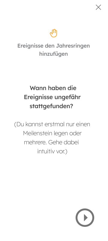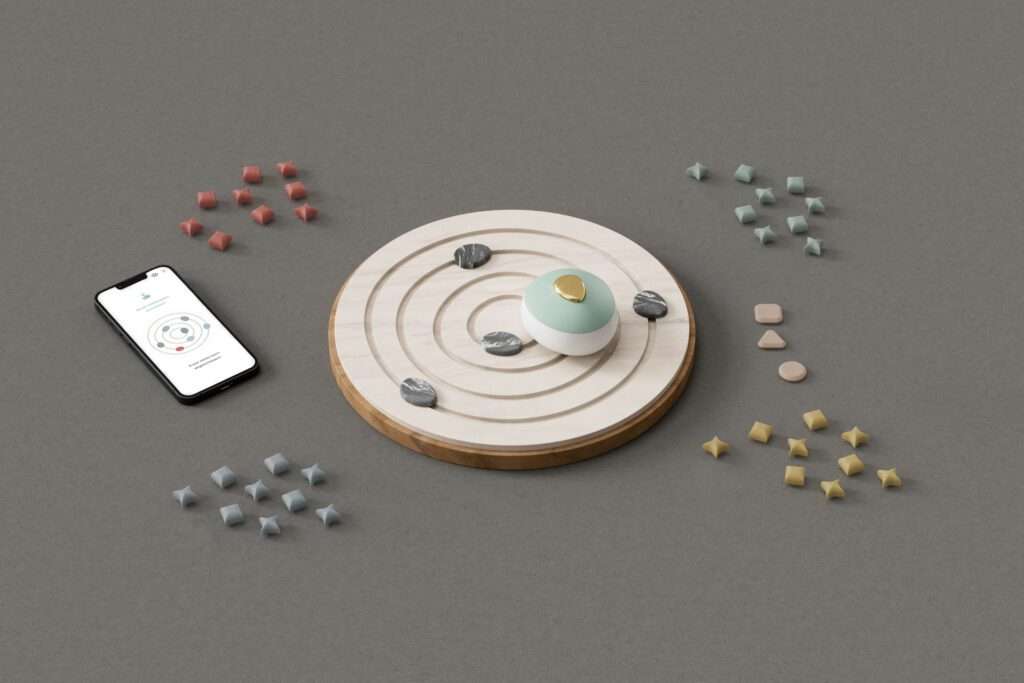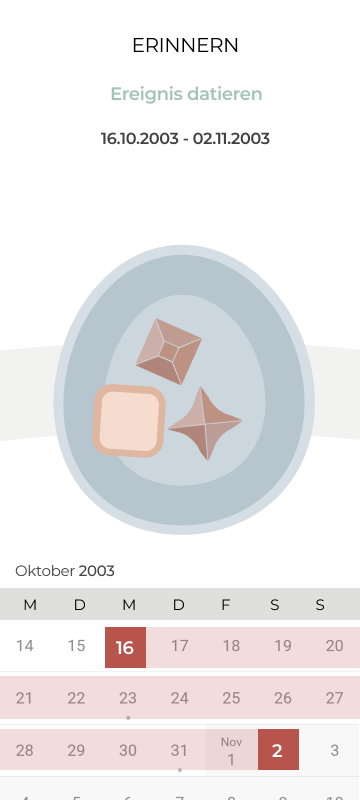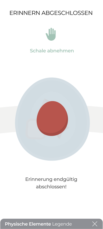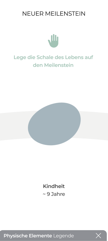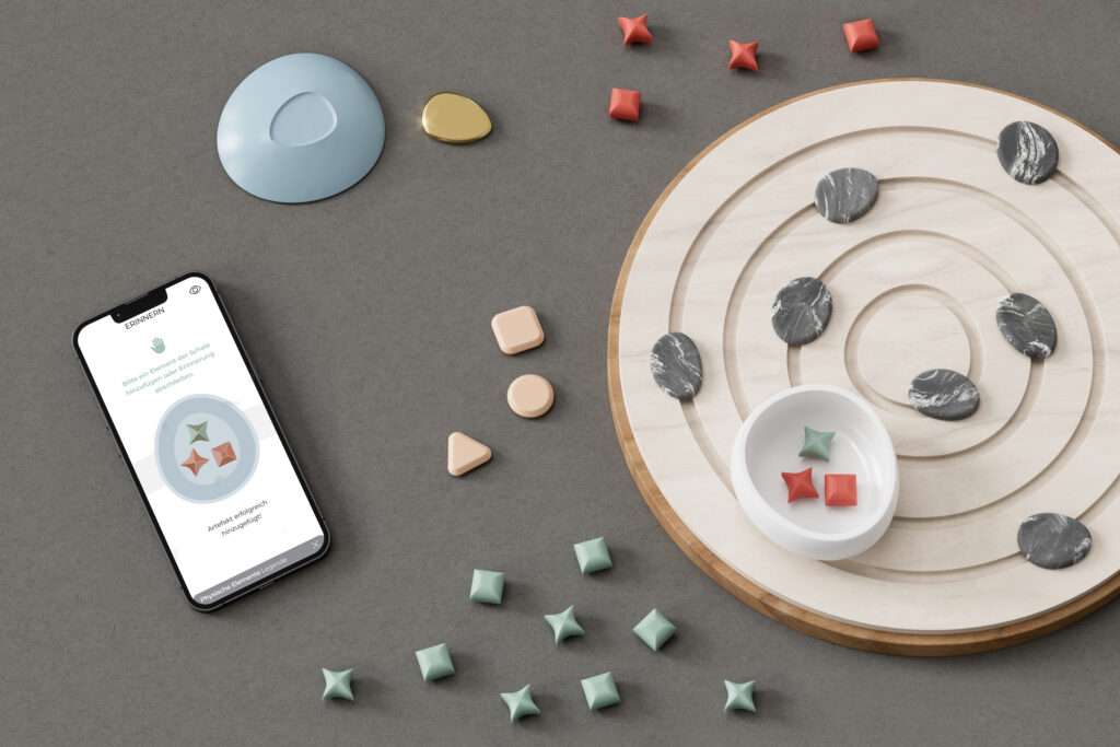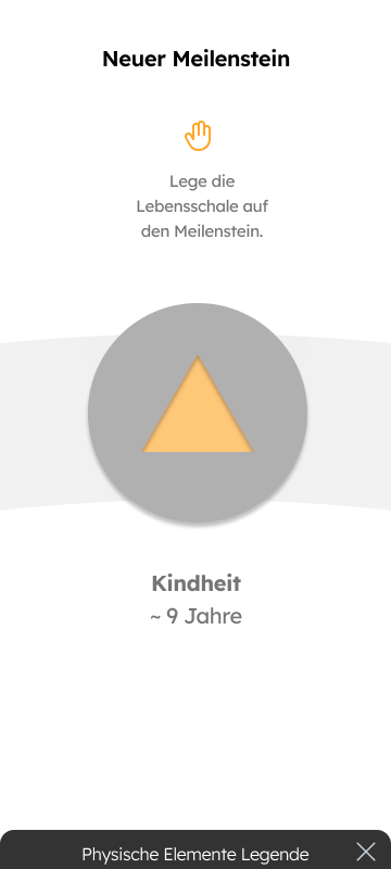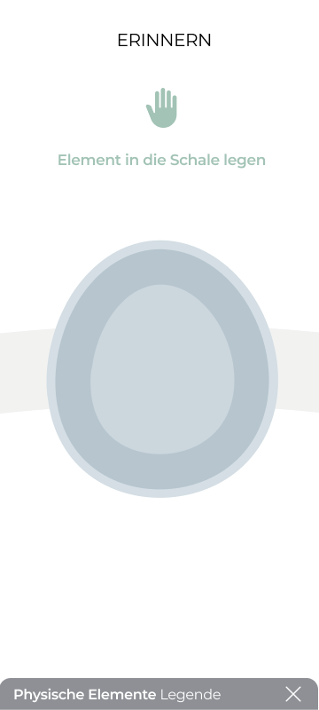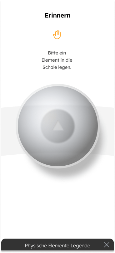Ein Usertest zeigte, dass die Interaktion hauptsächlich über die App erfolgt, was den intuitiven Erinnerungsprozess stören kann. Daher wurde entschieden, dass die Nutzer:innen bereits über das physische Objekt zwischen einem Artefakt und einer Erzählung wählen können. Zusätzlich können drei „Fakten-Elemente“ in Form von gedruckten Karten hinzugefügt werden, um biografische Fakten über das physische Erinnerungsobjekt zu integrieren. Diese werden in der App gespeichert und spezifischen Meilenstein zugeordent.
