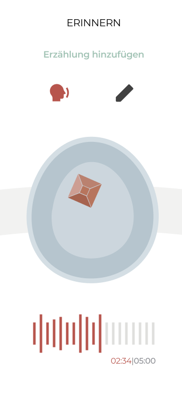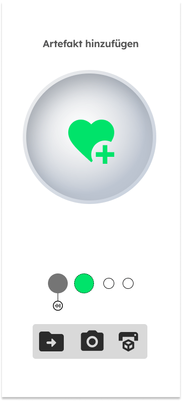 Ein digitales Pendant als klickbarer Prototyp wurde entwickelt, um die Ausgangslage für eine App zu schaffen, die Nutzer*innen im Erinnerungsprozess unterstützt und die Zuordnung von digitalen und physischen Artefakten ermöglicht. Dabei wird die Smartphone-Kamera für AR-, QR-Code- und 3D-Scans sowie Sprachaufnahmen und das Hinzufügen von Erinnerungsartefakten aus Chats und dem Gerätespeicher genutzt.