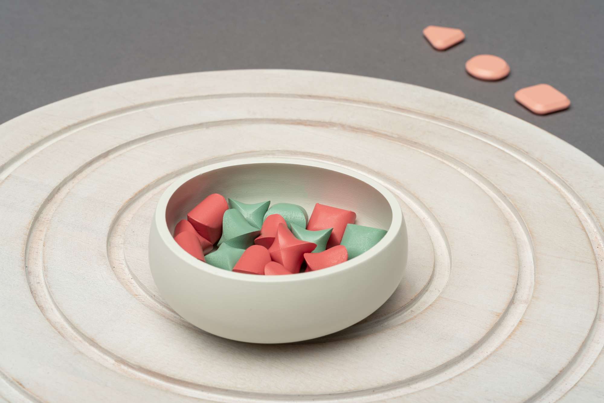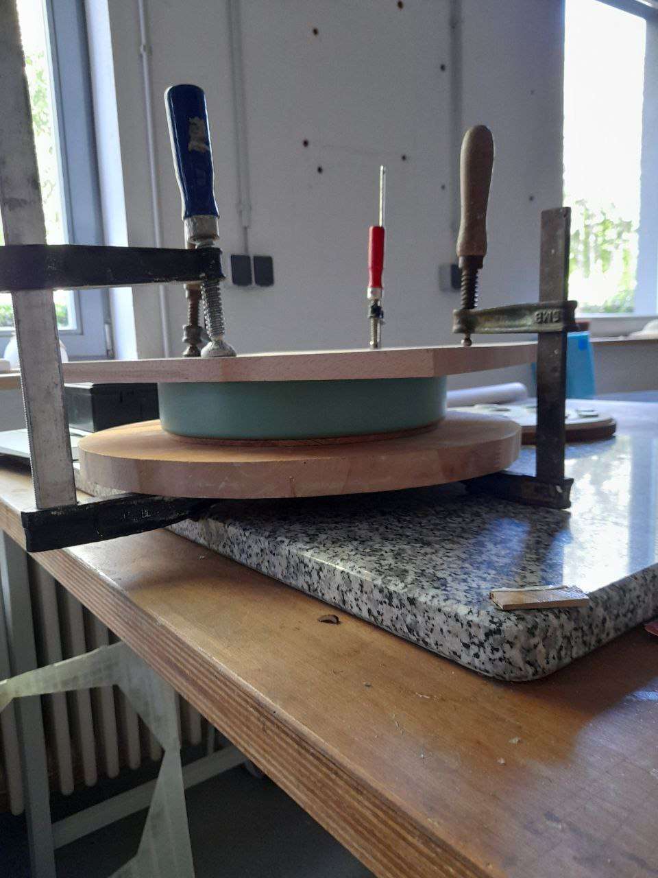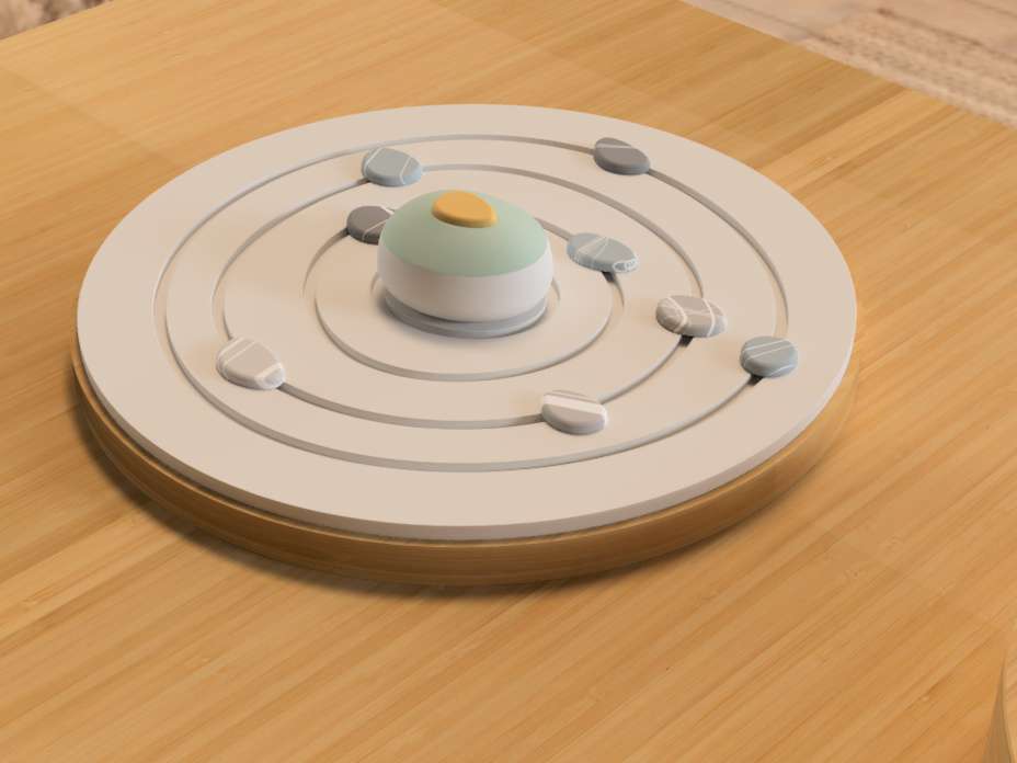 Das physische Modell wurde in der Modellwerkstatt der HTWD umgesetzt, wobei hauptsächlich natürliche Materialien verwendet wurden, um die im Rendering entworfenen und visualisierten Details zu reproduzieren. Die Erinnerungssteine und die Schale wurden im 3D-Druckverfahren aus Resin hergestellt und anschließend farbig lackiert.