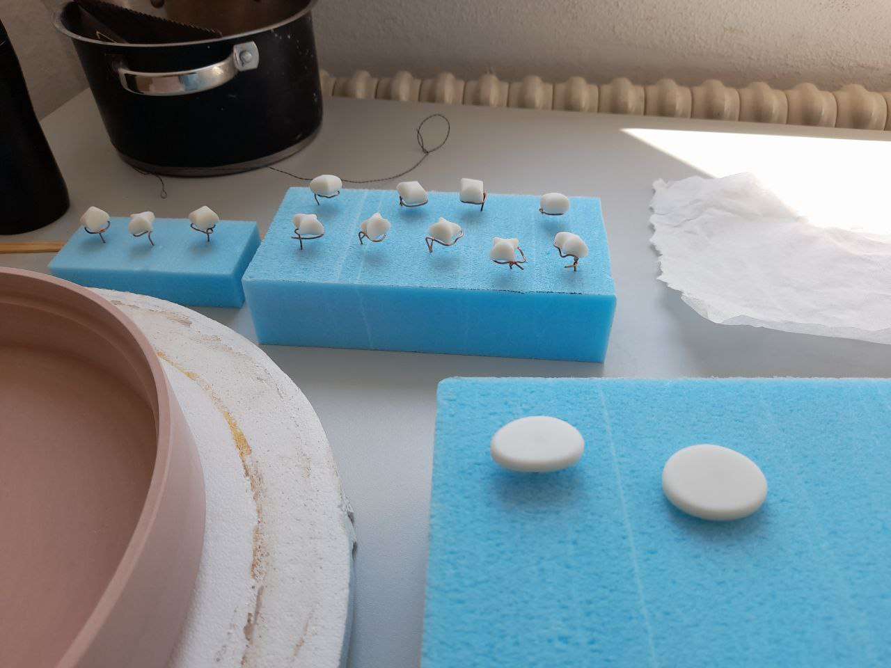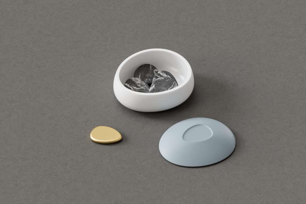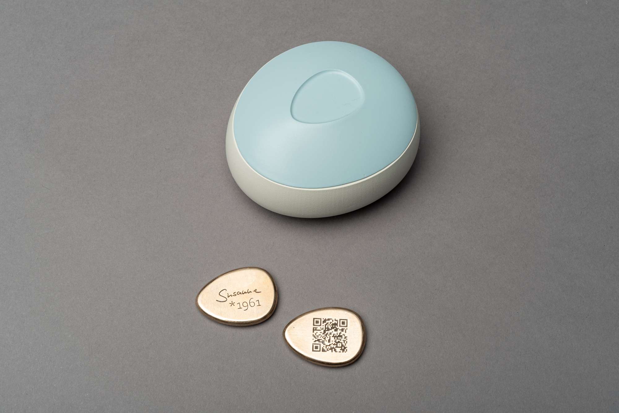 Der Kasten und die Baumscheibe wurden mit einer CNC-Fräse hergestellt und ebenfalls lackiert bzw. lasiert. Der Schlussstein, womit das Erinnern an den Meilenstein abgeschlossen wird, wurde in Bronzegussverfahren über eine Feingießererei hergestellt. Um die Steine sicher aufzubewahren, wurden am Ende kleine Taschen genäht, die bereits das Auspacken zu einem rituellen Vorgang machen und die Vorbereitung auf das Erinnern unterstützen.